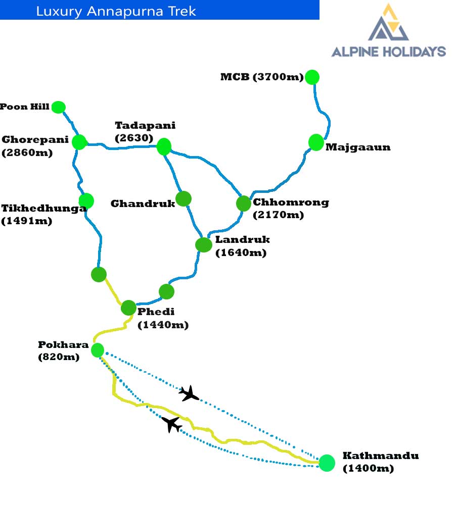 Luxury Annapurna Trek is a sophisticated way of trekking to the Annapurna Region of Nepal. We admire the beauty of Annapurna Region in a style and stay at the most comfortable ensuite lodges during the trek. During our adventure, we stay at some of the finest Nepali Architectural hotels and lodges, understand the Nepalese culture and enjoy the best views of Annapurna Mountains.